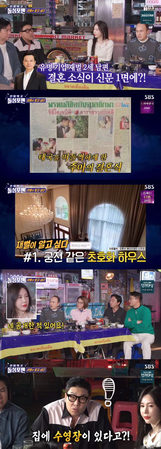 이상민은 "남편 분이 워낙 유명 기업 재벌 2세라서 결혼 소식이 태국 신문 1면에 났다"고 언급했다. 이어 "정말 궁전 같은 초호화 하우스에 살고 있냐"고 질문했다.
