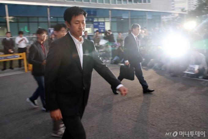 '마약 스캔들'에 휩싸인 배우 이선균(48)이 28일 오후 인천광역시 논현경찰서에 마약류 관리에 관한 법률 위반 혐의에 대한 경찰 조사를 마치고 나서고 있다. 2023.10.28 /사진=임성균 |