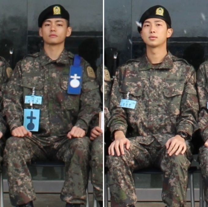 그룹 '방탄소년단'(BTS) 뷔와 RM이 육군에 입대한 가운데, 이들의 훈련소 사진이 처음으로 공개됐다.