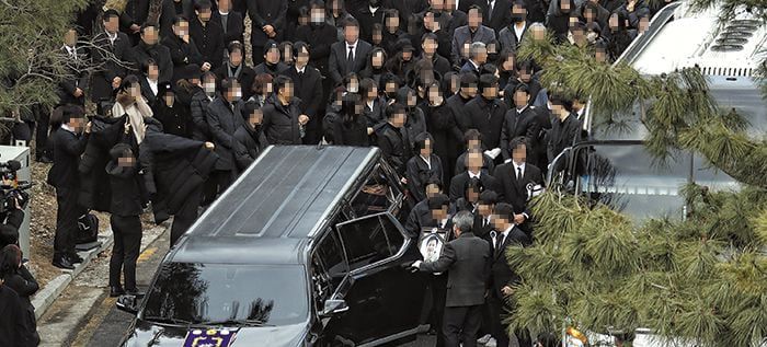 29일 낮 12시 서울 종로구 서울대병원 장례식장 1층 주차장. 지난 27일 숨진 배우 고(故) 이선균(48)씨의 발인식이 열렸다. 중학생 큰아들은 고인의 영정 사진을 들고 장례식장을 나섰다. 아내인 배우 전혜진(47)씨는 작은아들의 손을 잡은 채 뒤를 따랐다. 배우 조진웅, 설경구, 류승룡, 공효진 등 100여 명이 참석했다.