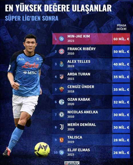 이후에도 '트란스퍼마르크트 튀르키예'는 김민재의 행보에 주목하며 그의 몸값을 세세히 전하기도 했다. 지난 여름에는 나폴리와 김민재의 결별이 가까워지자 매체 홈페이지에 튀르키예 리그를 떠난 후 가장 몸값이 크게 오른 선수 순위에서 1위를 차지했다고 소개하며 관심을 드러냈다.