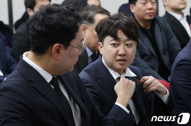 (서울=뉴스1) 박지혜 기자 = 신당 창당을 준비 중인 이준석 전 국민의힘 대표가 1일 오전 서울 용산구 서울역 대회의실에서 열린 개혁신당 신년 하례회에서 넥타이를 풀고 있다. 2024.1.1/뉴스1
