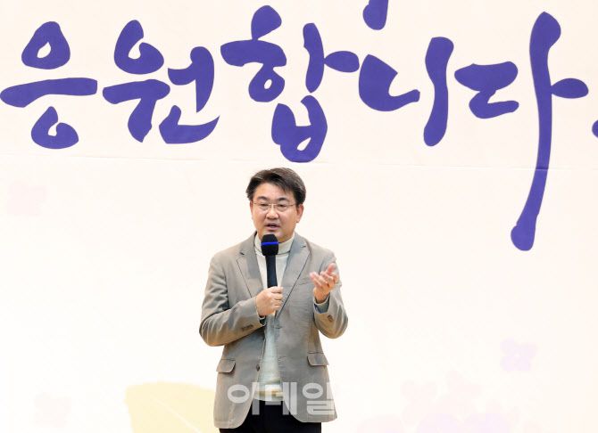 [이데일리 김태형 기자] 오승록 노원구청장이 3일 노원구청 대강당에서 열린 ‘2024년 노원구 시무식’에서 신년 인사말을 하고 있다.