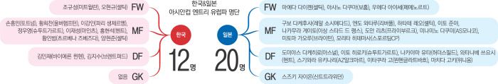 한·일 축구대표팀 ‘아시안컵 26인’ 유럽파 비교