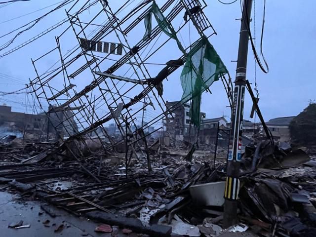 3일 일본 혼슈 중부 이시카와현 와지마시. 새해 첫날 규모 7.6 강진이 덮쳤던 이곳은 지진 후 이틀이 지났지만 여전히 폐허 그 자체였다. 노토반도 북쪽 해안마을 와지마의 대표적 관광지였던 '와지마 아사이치(아침 시장)'는 강진 후 덮친 화재로 초토화된 상태였다. 산과 바다만 있어 논농사를 짓지 못했던 이 지역 사람들이 1,000년 전 바다와 산에서 나는 생산물을 물물교환하면서 생겨난 유서 깊은 시장. 하지만 해산물, 야채, 특산품을 팔던 시장통 가게는 모두 흔적도 없이 사라졌다.