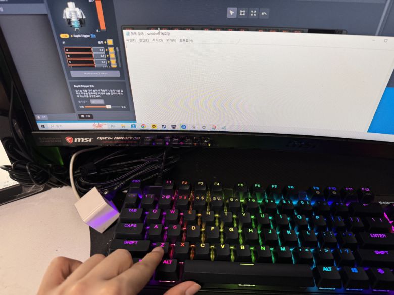 작동 지점을 3.8mm로 설정 후 키보드를 살짝만 눌러보니, 아예 인식이 되지 않았다. 끝까지 누르니 정상적으로 인식되는 것을 확인할 수 있었다. |