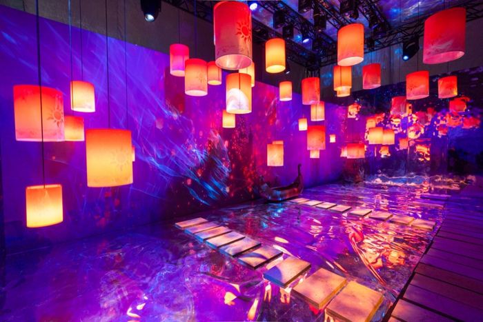 1층으로 내려가면 영화 ‘라푼젤’의 하이라이트 풍등 축제 장면을 재현한 장소가 등장한다. 실제 축제처럼 풍등이 움직이기도 하고 색도 변한다. 하이라이트를 장식하는 것은 ‘겨울왕국’이다. 발자국 버튼을 밟으면 바닥에 눈송이 모양의 미디어 아트가 나타나 보다 생생하게 전시를 즐길 수 있다.