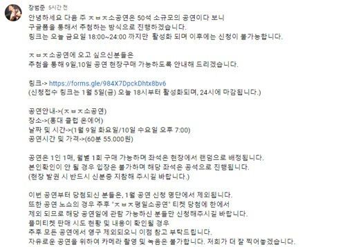 공연 불참자 역시 향후 있을 ‘ㅈㅂㅈ 평일 소공연’ 티켓 당첨에 한해 배제된다.