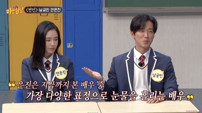 6일 오후 방송된 JTBC 예능 ‘아는 형님’에는 MBC 드라마 ‘연인’(2023)으로 연기 호흡을 맞췄던 남궁민과 안은진이 출연했다. 두 사람은 병자호란을 겪으며 엇갈리는 연인들의 사랑과 백성들의 생명력을 다룬 휴먼역사멜로 드라마 ‘연인’(극본 황진영, 연출 김성용)에서 각각 이장현, 유길채로 분했던 바. 전국 시청률 5.4%(닐슨코리아 제공·이하 동일)로 시작한 ‘연인’은 최고 시청률 12.9%로 종영했다.