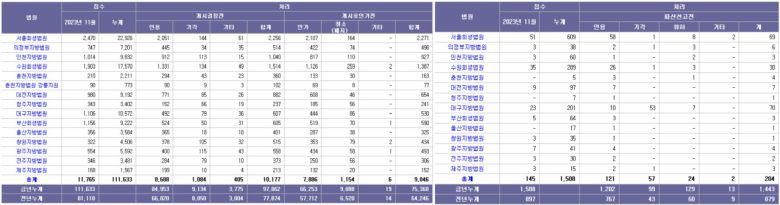 같은 기간 법인파산 신청 건수는 총 1508건으로 전년 동기(897건) 대비 68.1% 급증했다. 법인파산 역시 종전 최대치인 2020년 1069건을 이미 넘어섰다.