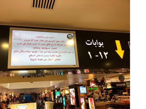 베이루트 국제공항 스크린에 나온 헤즈볼라 비난 메시지 |