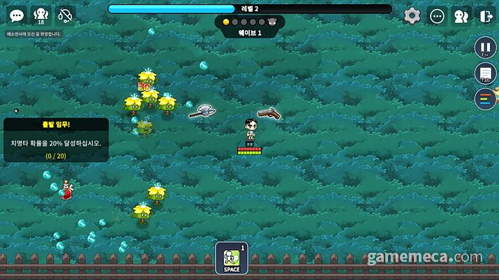 가장 먼저 추천해드릴 작품은 ‘메소전사’입니다. 2022년 출시돼 지금까지도 인기를 끌고 있는 게임 ‘뱀파이어 서바이버(Vampire Survivors)와 유사한 방식이죠. 플레이어는 캐릭터를 조작해 장비나 특성을 고르며 정해진 맵을 클리어해야 합니다. 게임 내에는 멀리 총알을 발사하는 권총부터 파이어볼을 소환하는 스태프 등 갖가지 무기들이 존재하죠.