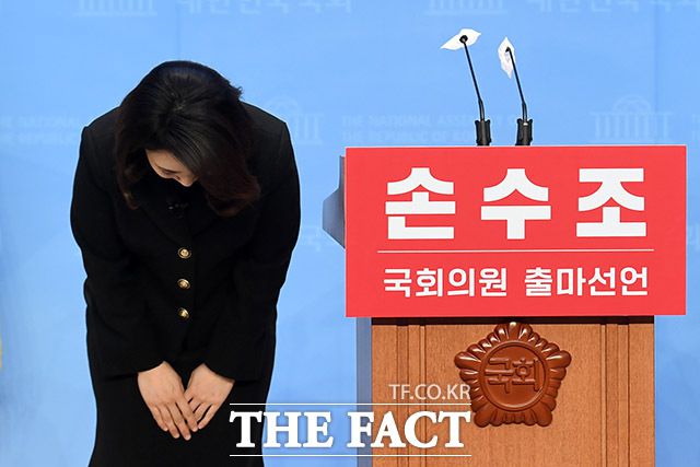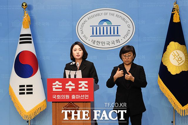 [더팩트ㅣ국회=남용희 기자] 손수조 리더스클럽 대표가 9일 오후 서울 여의도 국회 소통관에서 제22대 국회의원 선거 경기 동두천시 연천군 출마선언 기자회견을 하고 있다.