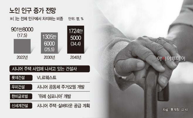 아시아투데이 이철현 기자 = 인구의 20%가 65세를 넘어서는 초고령 사회가 성큼 다가오면서 부동산 시장에서도 시니어 주택이 주목을 끌고 있다. 2050년까지 고령층 비중이 40%를 넘길 정도로 시니어 주택 수요도 풍부해 향후 공급 확대 가능성이 높다는 게 전문가들의 전망이다. 이에 건설업계도 시니어 주택 개발사업에 적극 나서는 분위기다.