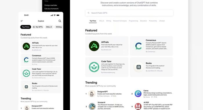 현재 GPT스토어에는 오픈AI의 승인을 받은 챗봇만 공개된 상태로, 글쓰기·리서치 및 분석·프로그래밍·교육·라이프스타일 등의 맞춤 앱이 올라와 있다. 오픈AI에 따르면 이미 300만개가 넘는 챗봇이 개발된 것으로 알려졌다. GPT스토어를 통해 다양한 앱이 유통되면 중소기업과 일반 소비자들도 생활에서 AI 기술을 활용할 수 있는 길이 열릴 것이라고 회사는 기대했다.