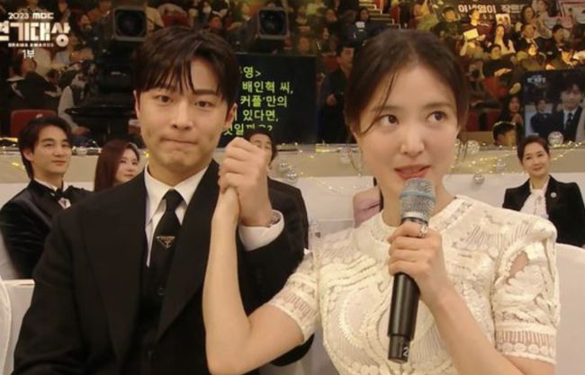 특히이세영은 “이준호와 베스트커플상을 받은 적이 있지 않냐”는 말에 “저는 새로운 남자와 결혼을 했기 때문에”라며 배인혁의 손을 잡고 흔들었다. 그러면서 이세영은 “네티즌 분들의 투표로만 결정이 된다면 살짝 아쉬울 것 같지만, 할 수 있다”며 다시 한 번 배인혁의 손을 잡았고 이는 일명 '손깍지' 샷으로 지켜보는 이들까지 설레게 했다.
