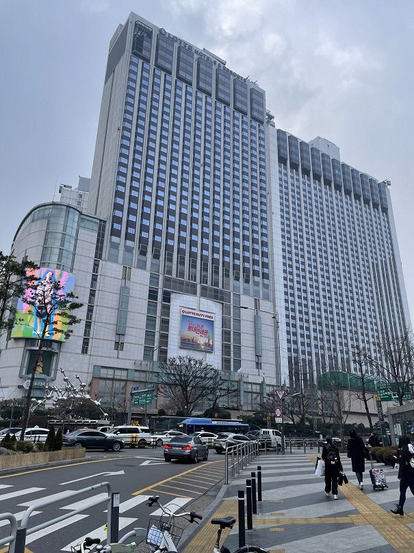 2024년 사진은 서울 중구 소공동에 위치한 롯데호텔 모습이다. 오른쪽 건물이 1979년에 지은 본관(메인 타워)이며, 왼쪽이 서울 올림픽을 앞두고 1988년에 문을 연 신관(이그제큐티브 타워)이다. 본관은 지상 38층, 지하 3층 규모로, 개관 당시 동양 최대 규모의 호텔이었고, 31층의 삼일빌딩을 누르고 서울에서 제일 높은 건물이 되었다. 본관 건축에는 경부고속도로 공사비에 버금가는 비용이 들었다.