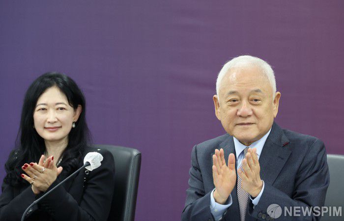[서울=뉴스핌] 김학선 기자 = 김한길 국민통합위원장과 이우영 특위 위원장이 3일 정부서울청사에서 열린 이주민 자치참여 제고 특별위원회 출범식에서 박수치고 있다. 국민통합위는 다문화·이주민 국가로의 전환과정에서 발생할 수 있는 문제점을 미리 살펴보고, 이주민 유입 시대를 대비하고자 특별위원회를 출범했다. 2023.11.03 yooksa@newspim.com