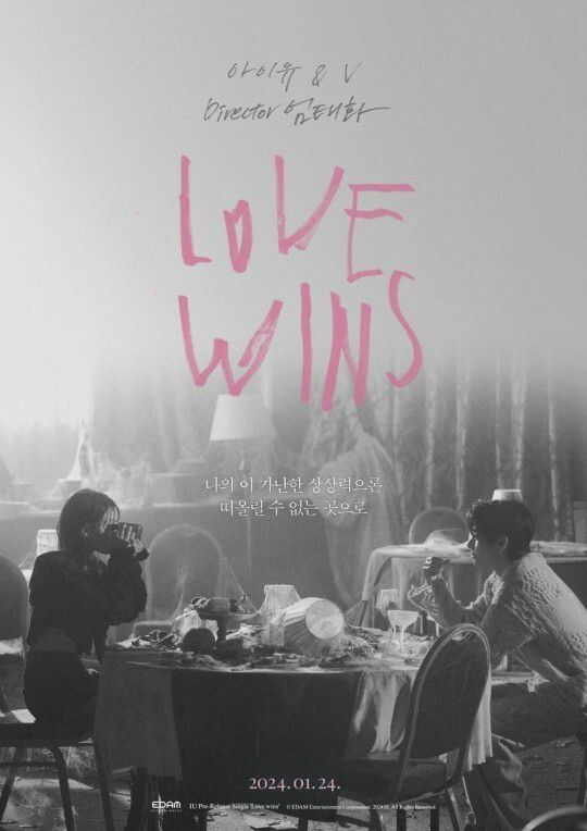 가수 아이유의 신곡 ‘러브 윈스’(Love Wins) 뮤직비디오 포스터에 방탄소년단(BTS) 멤버 뷔가 등장해 관심을 끌고 있다.