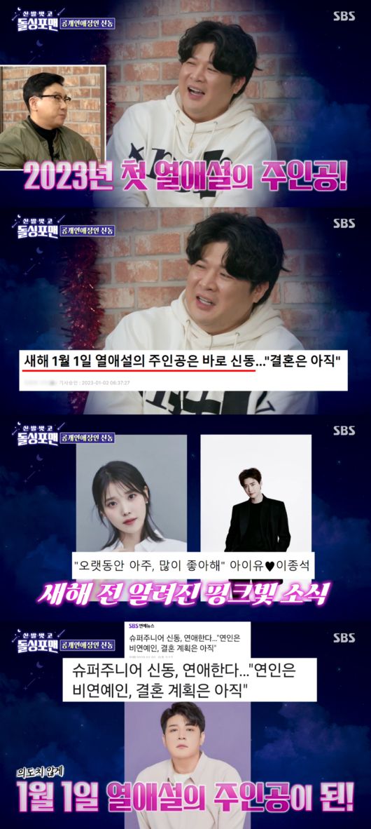 지난 16일 방송된 SBS ‘신발 벗고 돌싱포맨’(이하 ‘돌싱포맨’)에서 신동은 ‘공개연애 장인’이라고 소개됐다. 신동은 2023년 새해 공개연애 첫 주인공이 됐던 바. 그는 “매년 1월 1일 커플들이 있지 않냐. 그런데 의도치 않게 그 분들의 열애가 12월 31일에 공개가 됐다. 그러면서 내 열애설이 1월 1일에 발표됐다”며 “댓글에 다 아무도 관심 없다고 하더라. 왜 내 열애를 1월 1일에 공개해서”라며 속상한 마음을 내비쳤다.
