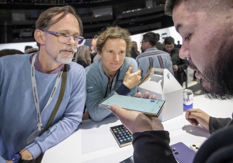 17일(현지시간) 미국 새너제이에 위치한 SAP센터에서 개최된 '갤럭시 언팩 2024'에서 관람객이 '갤럭시 S24' 시리즈로 실시간 통역 기능을 체험하고 있는 모습 |