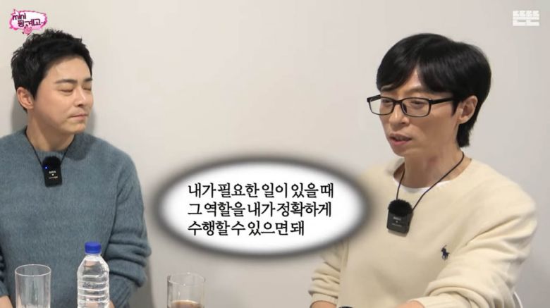 유재석은 "내가 필요한 일이 있을 때 그 역할을 내가 정확하게 수행할 수 있으면 된다"라고 강조했다. 조정석은 "내 자신이 자괴감이 들지 않기를 바라는 거다. 저 혼자 마상(마음의 상처)를 입고 싶지 않다. 잘하고 싶다"라며 공감했다. 조세호는 "그런 생각을 지금 하고 있기 때문에 하고 있는 일에 집중해서 잘하고 있는 것 같다"라고 말했다.
