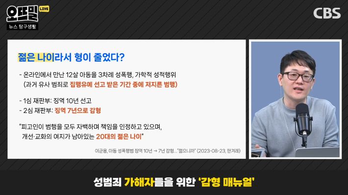 ◆ 조석영> 저도 그 논란을 보고 이 주제를 정리해봐야겠다는 생각이 들었는데요. 당연히 가해자로 지목된 사람들도 변호 받을 권리가 있습니다. 다만 법에 정해진 형량에 한참 못 미치는 처벌이 나오거나 징역이 아닌 집행유예가 나오는 감형이 너무 많다는 거죠. 오죽하면 성범죄자들이 돈을 써서 감형을 구매하는 매뉴얼이 있다는 얘기까지 나옵니다.