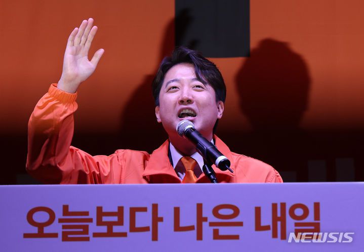 [서울=뉴시스] 김명년 기자 = 이준석 개혁신당 대표가 20일 오후 서울 영등포구 국회의원회관에서 열린 개혁신당 중앙당 창당대회에서 대표자 수락연설을 하고 있다. 2024.01.20. kmn@newsis.com