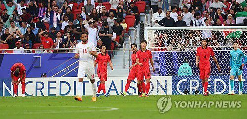 그러나 한국은 곧바로 다음 경기인 요르단전에서 상대 전적 5경기 무패(3승2무) 기록이 무색하게 대표팀 주장 손흥민의 선제골을 지키지 못하고 2실점하면서 패배 위기에 놓였다. 다행히 황인범이 동점골을 이끌어 내면서 요르단전 무패 기록을 이어가는데 성공했다.