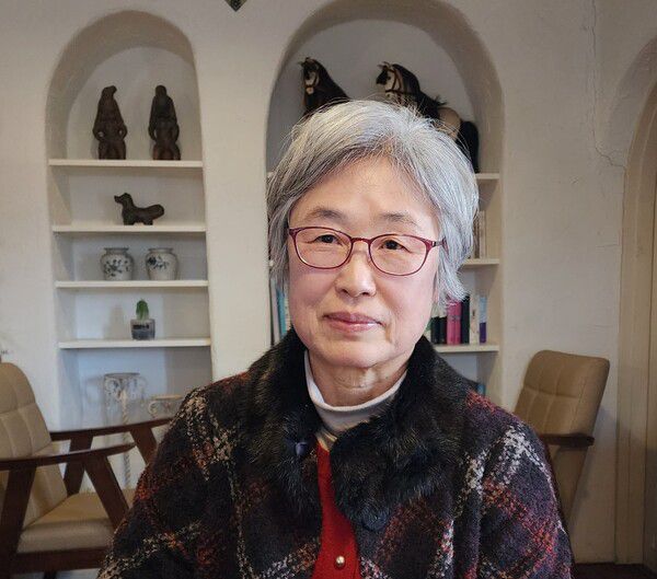 자택에서 인터뷰를 하고 있는 박광숙씨. 박설희 시인 제공 |