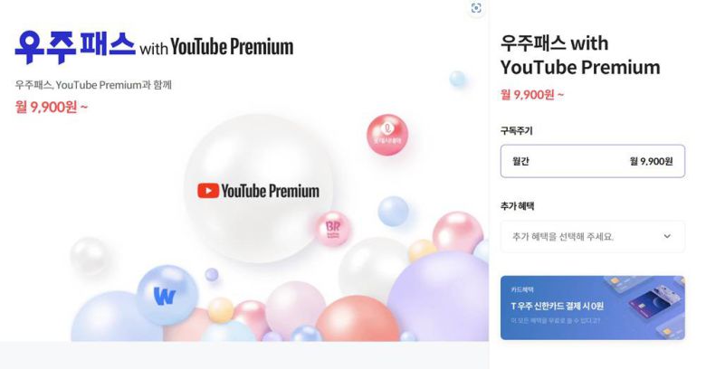 ‘우주패스 with YouTube Premium’ 말고도 ‘우주패스 all’과 ‘우주패스 life’에 유튜브 프리미엄을 추가 혜택으로 선택해 이용하는 방법도 있습니다.