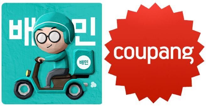 ‘유통공룡’ 쿠팡과 ‘배달앱 시장 1위’ 배달의민족의 시장 영향력이 점점 커지고 있다. 사진은 배달의민족과 쿠팡 누리집 로고 갈무리