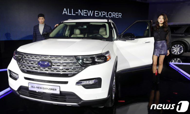 5일 오전 서울 서초구 반포동 세빛섬에서 열린 ‘올-뉴 익스플로러’ 출시 행사에서 모델들이 차량을 소개하고 있다. 북미시장에 이어 두번째이자 아시아 최초로 출시된 '올-뉴 익스플로러'는 2.3L GTDI 엔진과 10단 자동변속기를 탑재해 304마력과 최대토크 42.9kg.m의 업그레이드된 퍼포먼스를 선보이며 공인연비는 전세대 대비 1km/L 향상된 8.9km/L 이다. 국내 판매가격은 5,990만원. 2019.11.5/뉴스1 ⓒ News1 이동해 기자 |