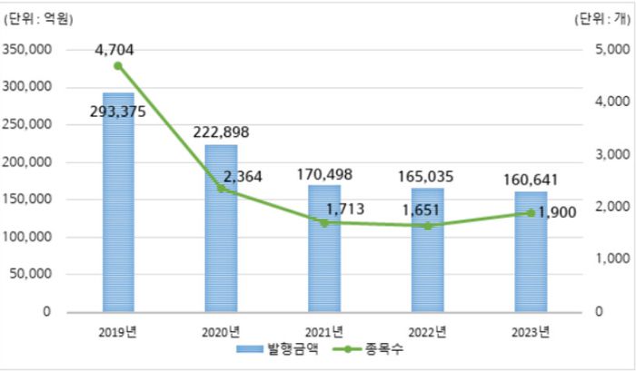 29일 한국예탁결제원에 따르면 지난해 DLS 발행금액은 16조641억원으로 전년(16조5035억원) 대비 2.7% 감소한 것으로 집계됐다.