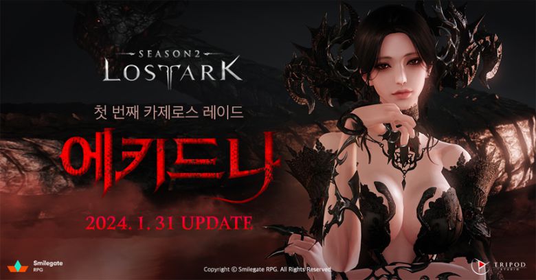 그 시작을 여는 ‘에키드나’는 게임 스토리 속에서 ‘비아키스’ 이전, 욕망군단장으로 군림했던 강력한 악마다. 아름다운 외모를 가지고 있으며 전투 중 다양한 방법으로 모험가들을 현혹시켜 죽음에 이르게 한다. 지난 26일 에는 에키드나와의 전투 모습이 담긴 티져 영상이 공개되기도 했다.