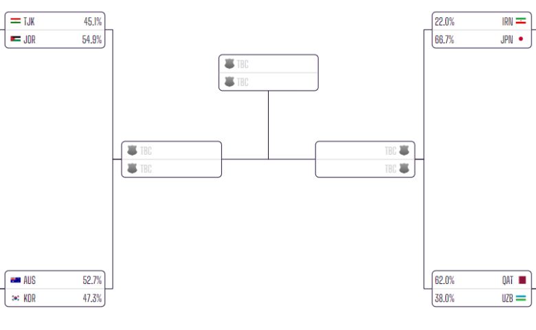 아시안컵 최다 우승국인 일본은 이번 대회에서 2011년 이후 13년 만의 정상 등극에 도전한다. 이란 또한 1976년 이후 48년 만의 우승을 노리고 있다. 이번 맞대결 승자가 결승까지 올라올 가능성이 높다. 카타르-우즈베키스탄 승자와 4강에서 만나지만 객관적 전력상으로도 일본, 이란이 우위에 있다.