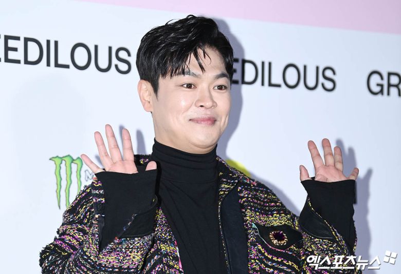 이날 '그리디어스' 컬렉션 쇼에 참석한 개그맨 김동하가 포즈를 취하고 있다.