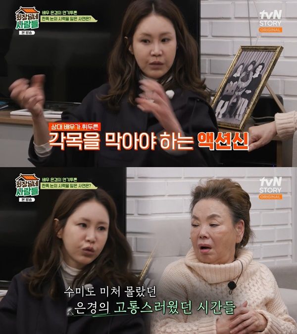 이날 김수미는 “너 살짝 부상 당하지 않았냐. 기사에서 본 것 같다”고 물었다. 이에 신은경은 “저는 작품할 때마다 잘 다치고 그랬다. ‘조폭 마누라’ 때도 눈 다쳐서 한쪽 눈 시력이 없다”고 고백했다.