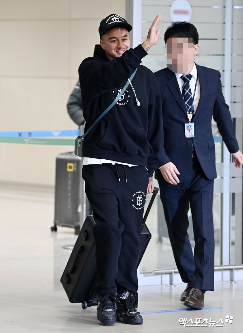 린가드는 지난 5일 인천국제공항 제2터미널을 통해 입국 게이트를 빠져나왔다. 입국장에 모습을 드러낸 린가드는 검은색 모자에 검은색 상하의를 입었지만 그럼에도 화려함이 묻어나는 패션으로 등장, 입국장을 찾은 약 200명 팬들의 환호성을 받았다.
