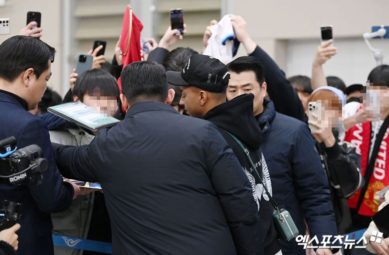 린가드는 입국장에 모습을 드러내며 팬들을 향해 손을 흔들었다. 한 손에 캐리어를 끌고 들어온 그는 이후 바리케이트 앞에서 캐리어는 내려놓더니 자신을 원하는 모든 팬들에게 사인과 사진 촬영 등을 했다.