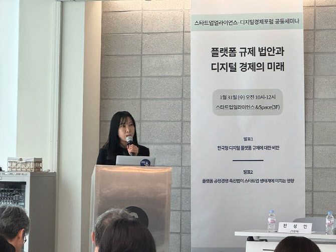 김현경 서울과기대 교수는 지난달 31일 디지털경제연합과 스타트업얼라이언스가 주최한세미나에서 이 같이 밝히면서, 그간의 국내 플랫폼 규제 정책이 오락가락하고 있다고 비판했다.