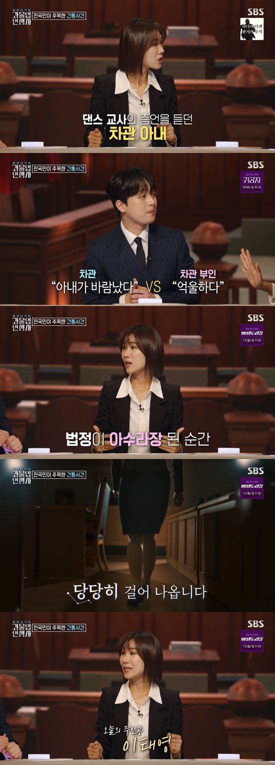 이태영은 "남편이 거짓말하고 안 들어온 시간에 친정집이 찍혀 있던 사연도 있다. 장모님과 바람이 났던 것"이라고 충격적인 사연을 전하기도 했다.
