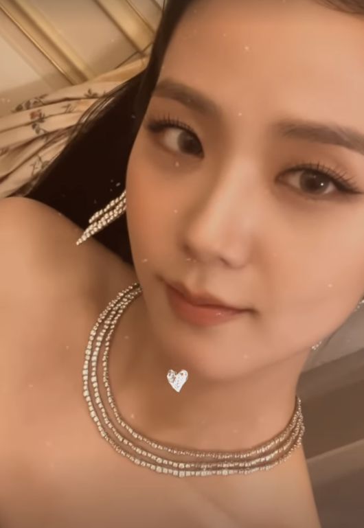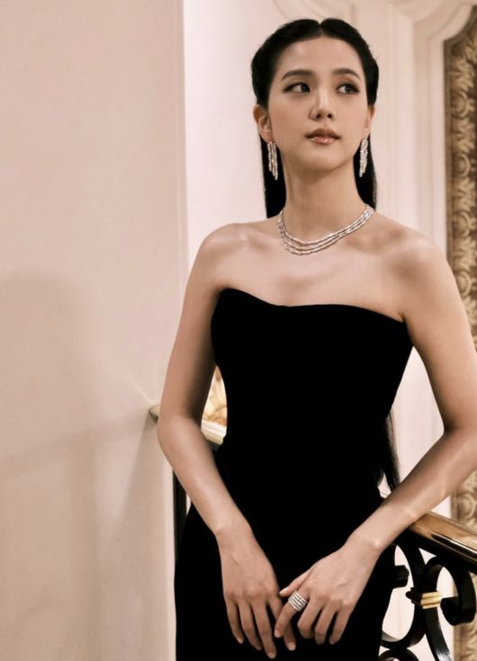 블랙 드레스를 입은 지수는 우아함과 사랑스러운 면모를 뽐냈으며 화려한 액세러리로 럭셔리한 매력을 더했다. 그가 착용한 목걸리는 22만달러(한화 2억 9,337만 원) 상당인 것으로 알려졌다.