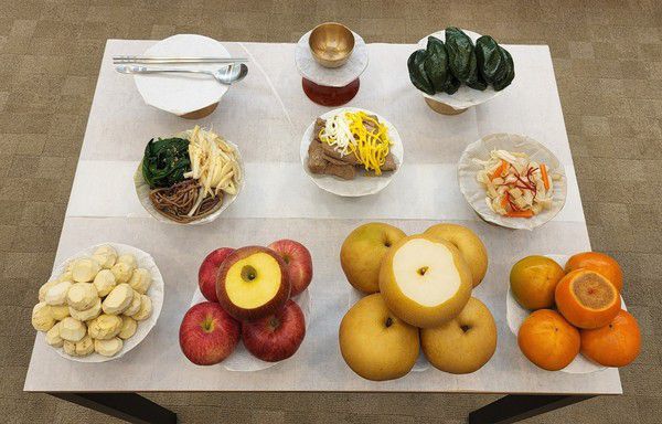 모든 음식과 과일의 양은 홀수로 올리며, 과일의 위와 아래를 한번 돌려 깎은 후 올린다.