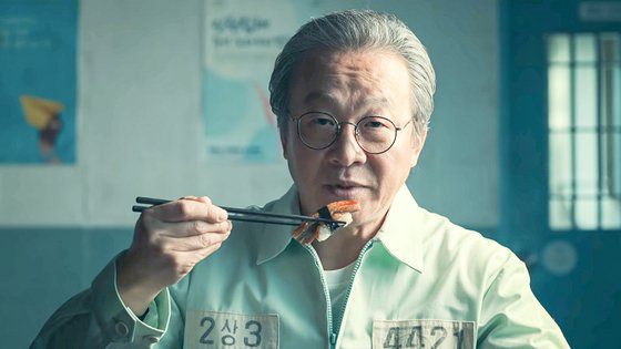극중 형성국 회장이 접견실에서 장어 초밥을 먹는 장면. 사진 넷플릭스 캡처