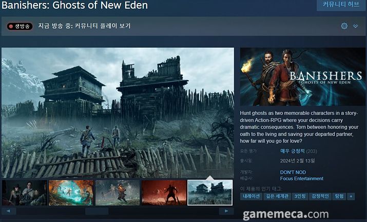 지난 13일 돈노드의 액션 RPG 신작 '배니셔: 고스트 오브 뉴 에덴(Banishers: Ghosts of New Eden)'이 출시됐다. 출시 직후 스팀에서 호평을 받으며 '매우 긍정적' 평가를 기록 중이다.