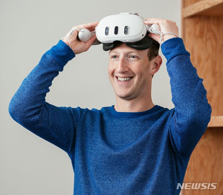 [서울=뉴시스]윤현성 기자 = 마크 저커버그 메타 CEO(최고경영자)가 자사의 VR(가상현실) 헤드셋인 '퀘스트3'가 애플 비전프로보다 더 뛰어나다고 주장했다. 퀘스트3가 훨씬 더 저렴하면서도 가볍고, 더 풍부한 콘텐츠를 즐길 수 있다는 것이다.