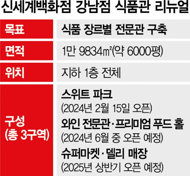 한편 신세계백화점 강남점은 스위트 파크를 시작으로 올 하반기 와인 전문관과 프리미엄 푸드 홀을 열고, 내년 상반기까지 슈퍼마켓과 델리 매장을 차례로 재단장해 1만 9834㎡(약 6000평) 규모로 새 식품관을 완성할 예정이다.