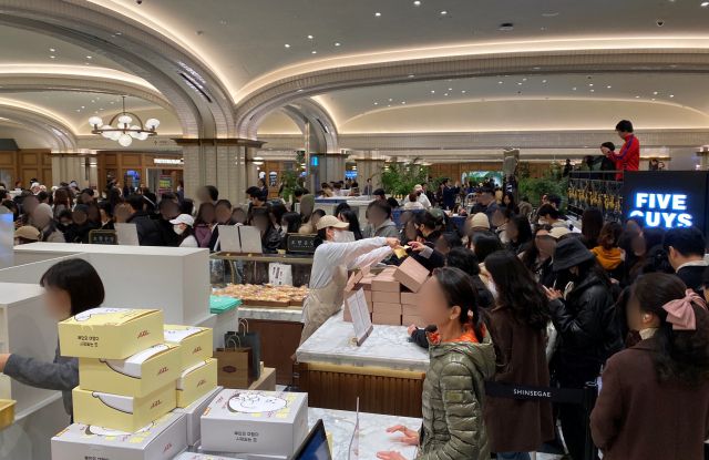 15일 오전 리뉴얼 후 처음 영업을 시작한 신세계(004170)백화점 강남점 지하 1층 ‘스위트 파크’에서는 여기저기서 감탄사가 터져 나왔다. 알코올로 불을 붙여 향을 입힌 크레페, 소금빵 반죽으로 만든 붕어빵 등 백화점에서는 쉽게 찾아볼 수 없었던 다양한 디저트가 눈길을 끌었다. 눈·비가 섞여 내리는 궂은 날씨에도 스위트 파크에는 다양한 디저트 메뉴를 구경하러 온 사람들로 북적거렸다. 구매하려는 줄이 두 바퀴 이상 길게 늘어진 매장도 있었다. 부산 유명 빵집 ‘초량온당’ 팝업스토어를 찾은 40대 여성 김 모 씨는 “한 시간 이상 기다렸다”면서 “부산에서만 살 수 있던 빵을 강남에서 사는 건데 이 정도는 괜찮다”고 웃어 보였다.