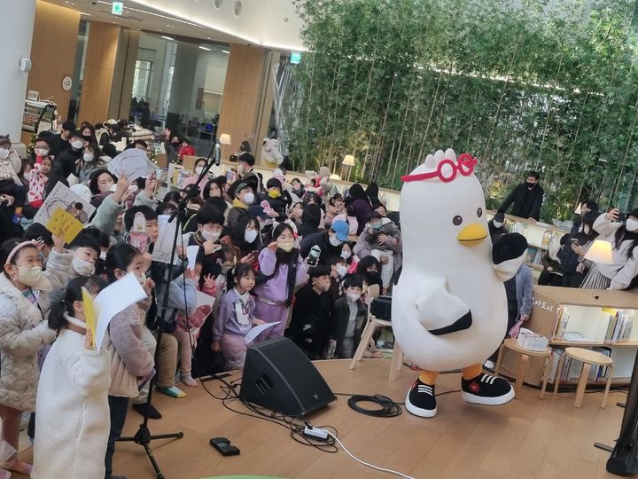 [부산=뉴시스] 부산시청 1층 들락날락에서 음악회 행사가 열린 가운데 부산시 캐릭터 부기와아이들이 함께 모여 기념촬영 하고 있다. (사진=부산시 제공) 2024.02.16. photo@newsis.com *재판매 및 DB 금지 |